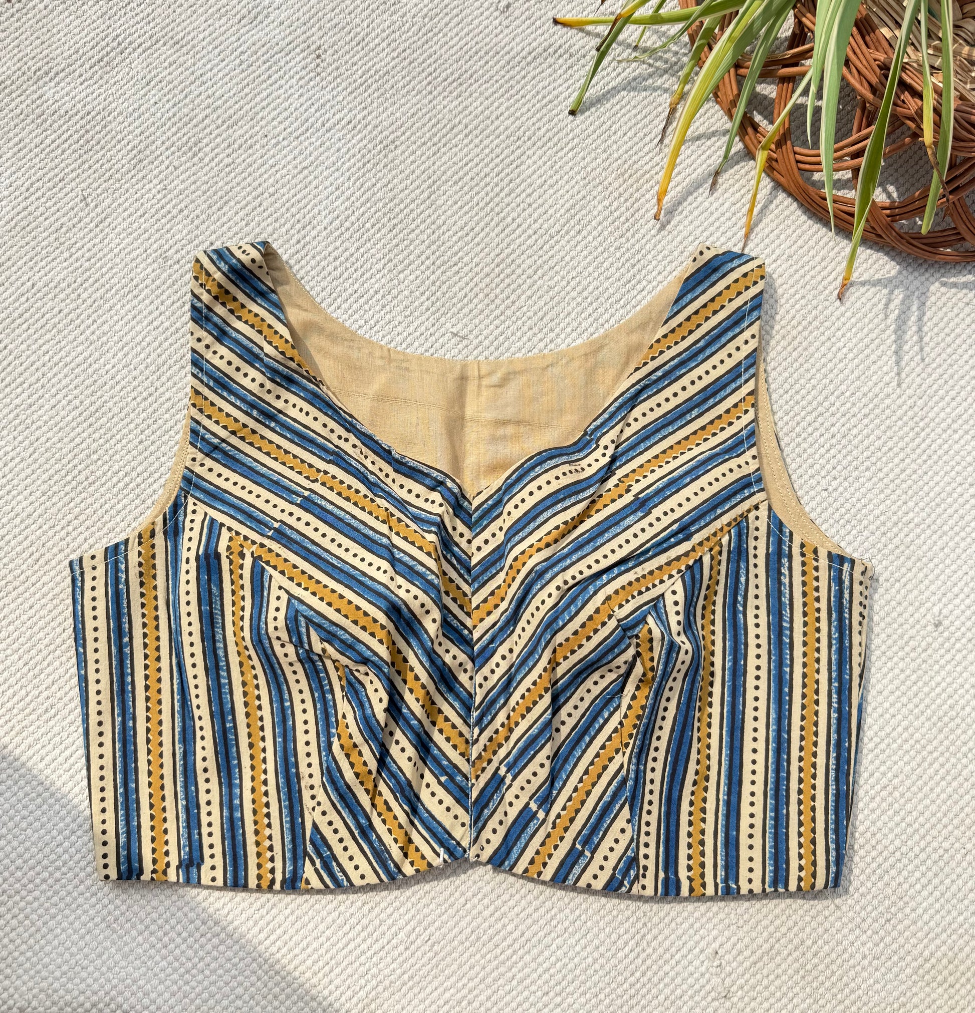 Cotton blouse with back closure . It has a margin on 1” on each side . (Non padded )