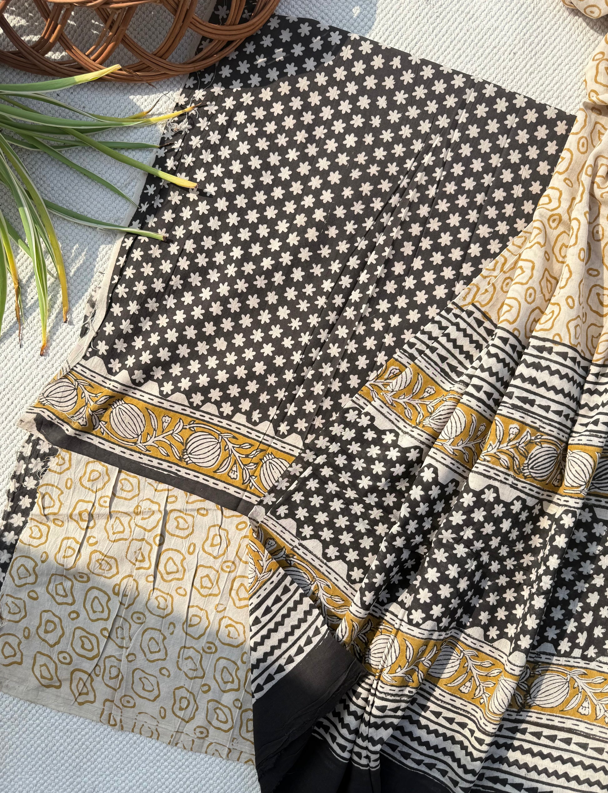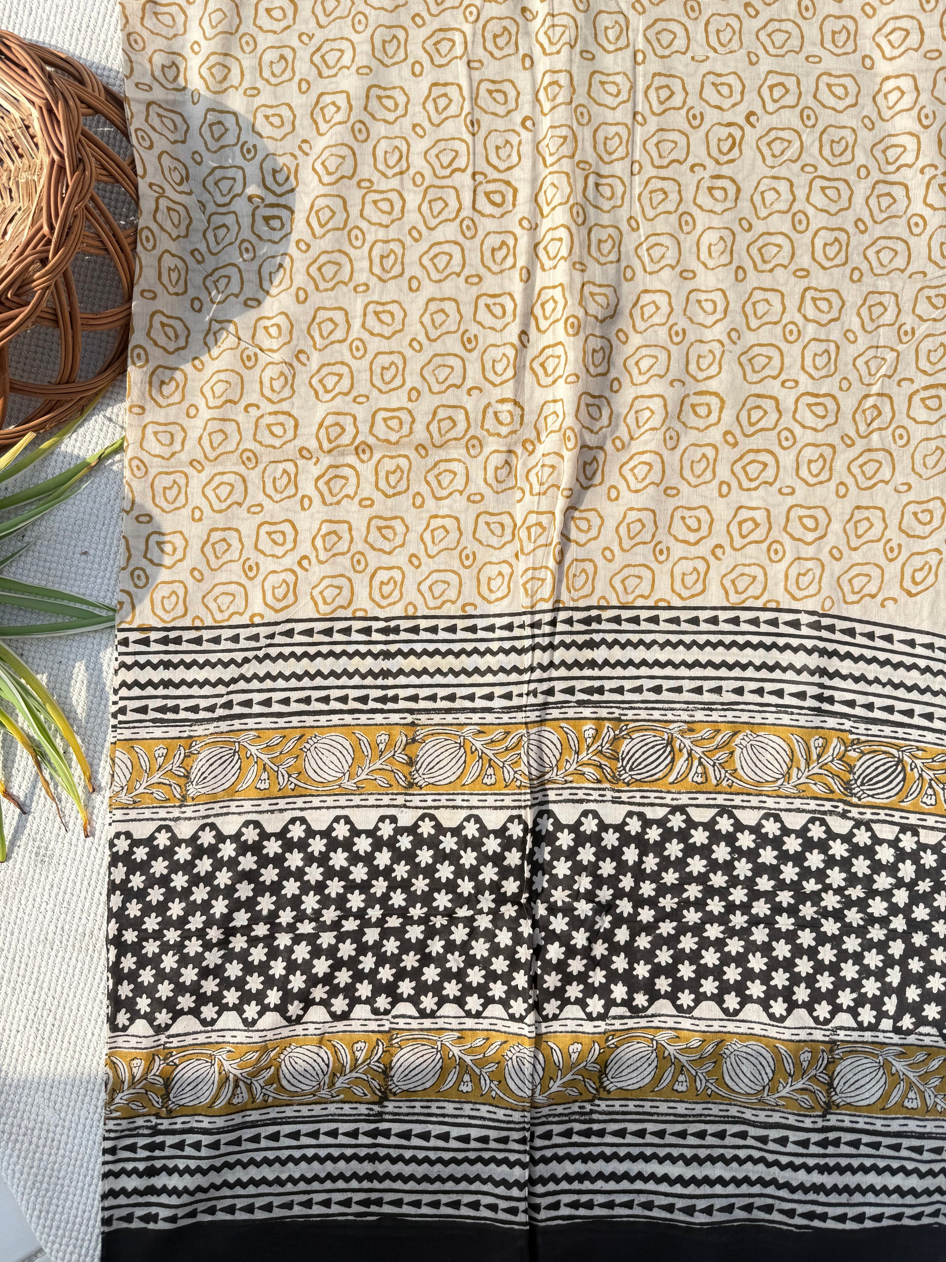 Hand block printed mul cotton unstitched suit material .