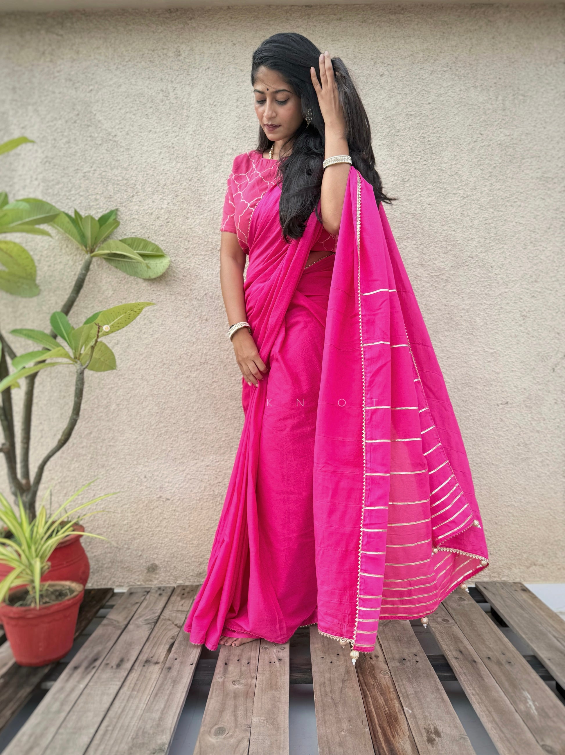 Soft mul cotton saree adorned with gota lace Edge detailing and on palla .